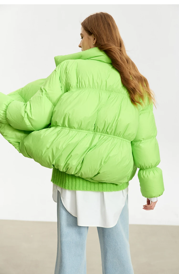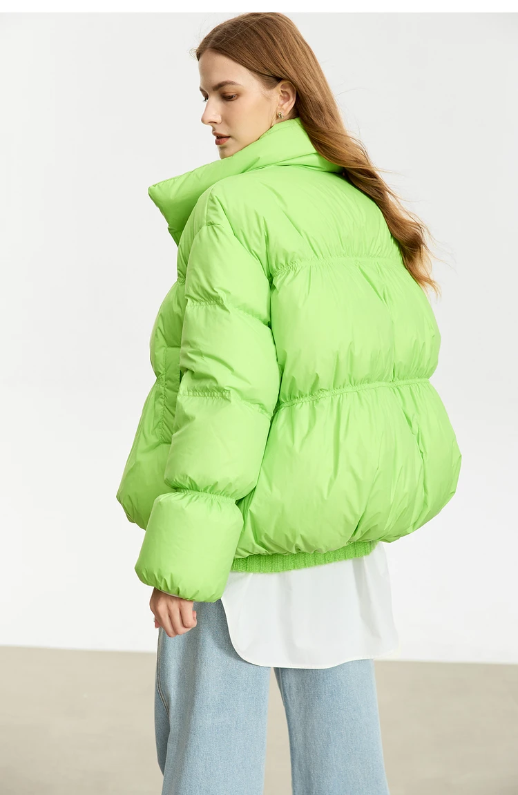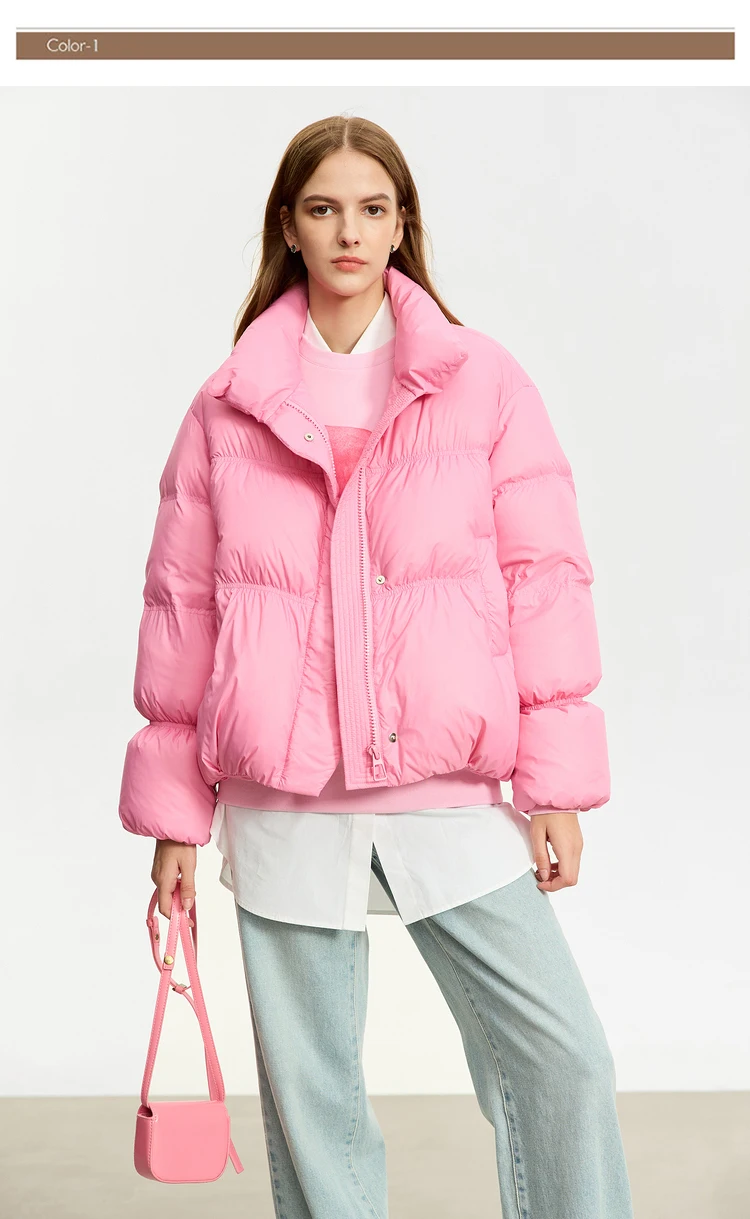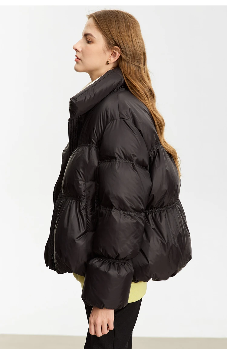 A minimalist down jacket designed for serious winter warmth with a clean, polished finish. Filled with high down content for lightweight insulation, it features a full-zip front with button detailing and a structured collar for a refined, everyday look. The regular length and wide-waisted cut make it easy to layer while keeping a sleek profile.