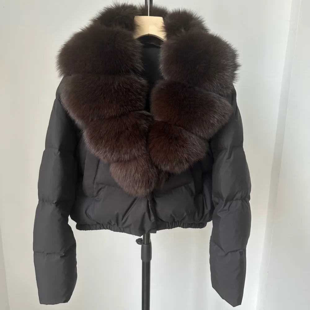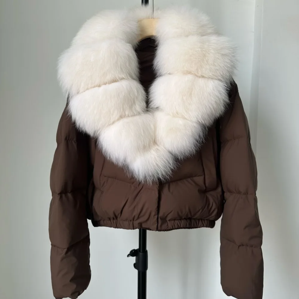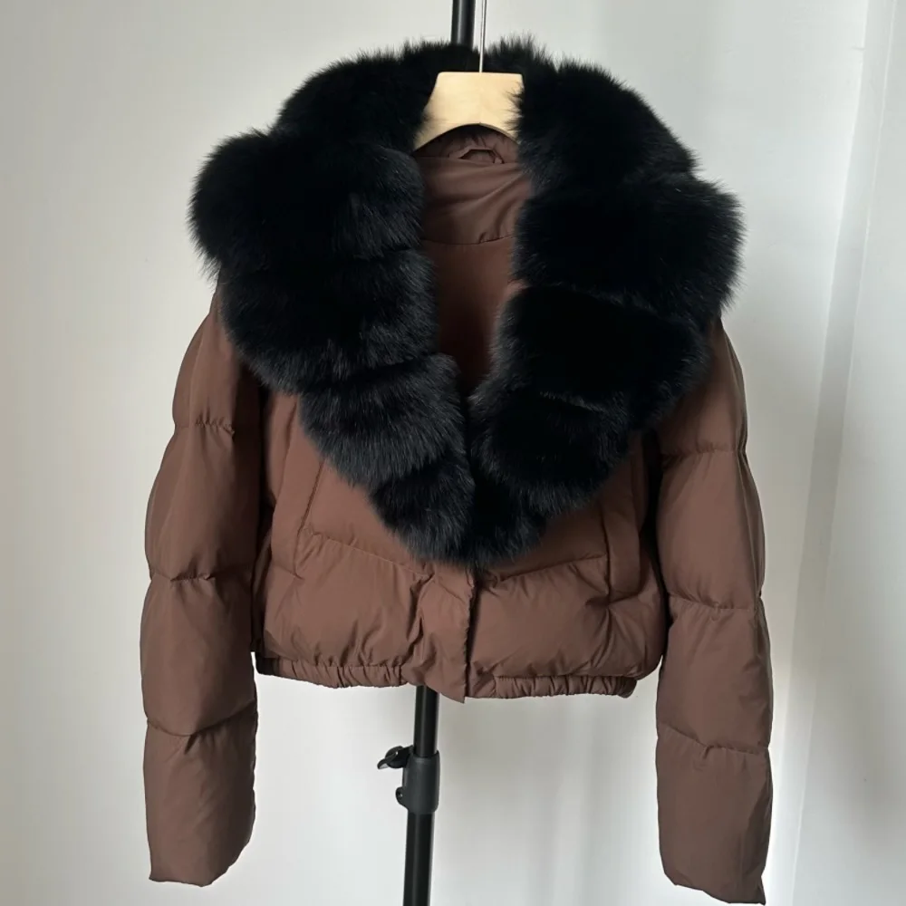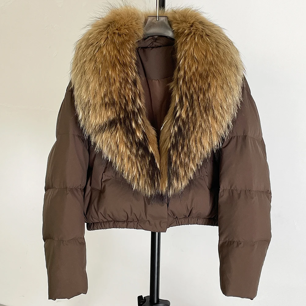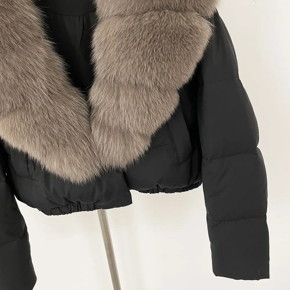 A winter-ready puffer jacket designed for serious warmth with a polished, elevated look. Filled with high down content for lightweight insulation, it features a detachable fur collar so you can switch between a statement finish and a cleaner silhouette. A short length and thick construction make it ideal for daily wear while staying comfortable and protective in cold weather.