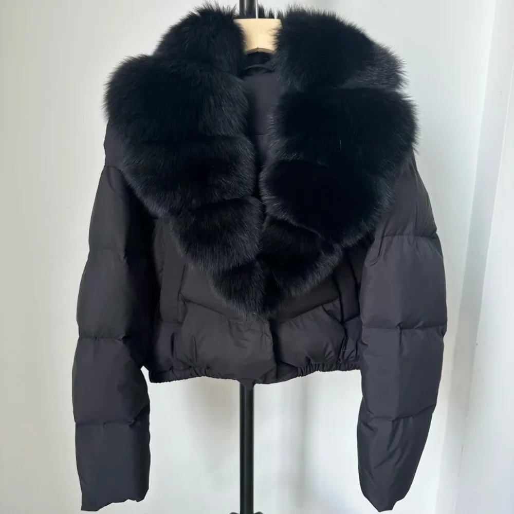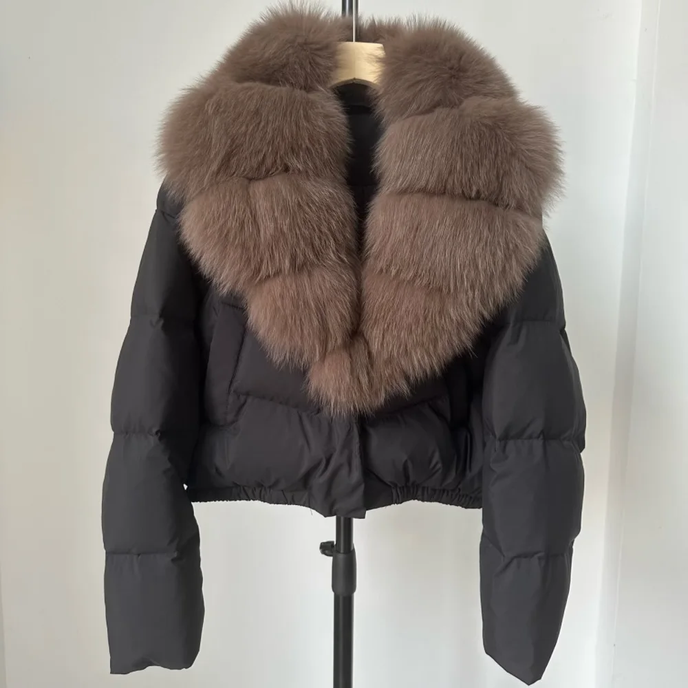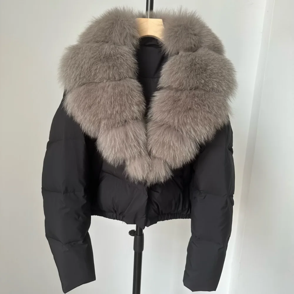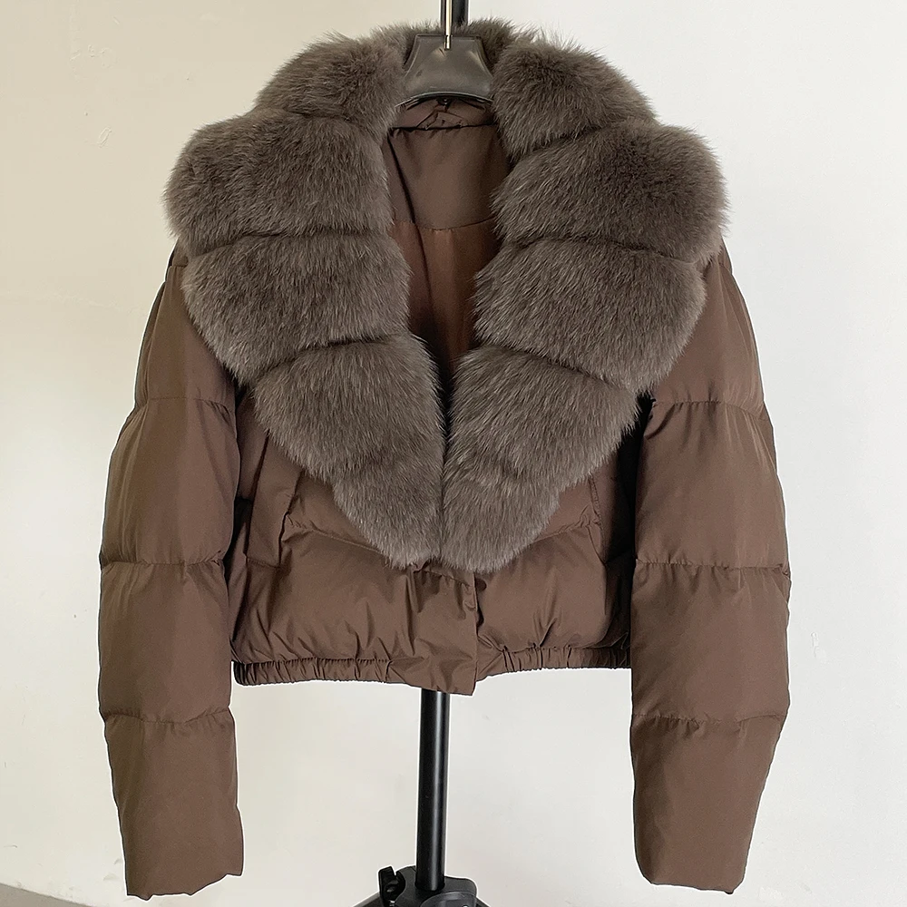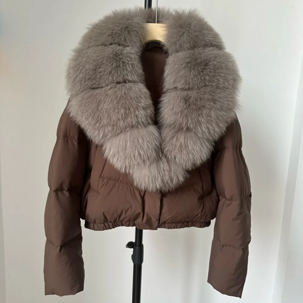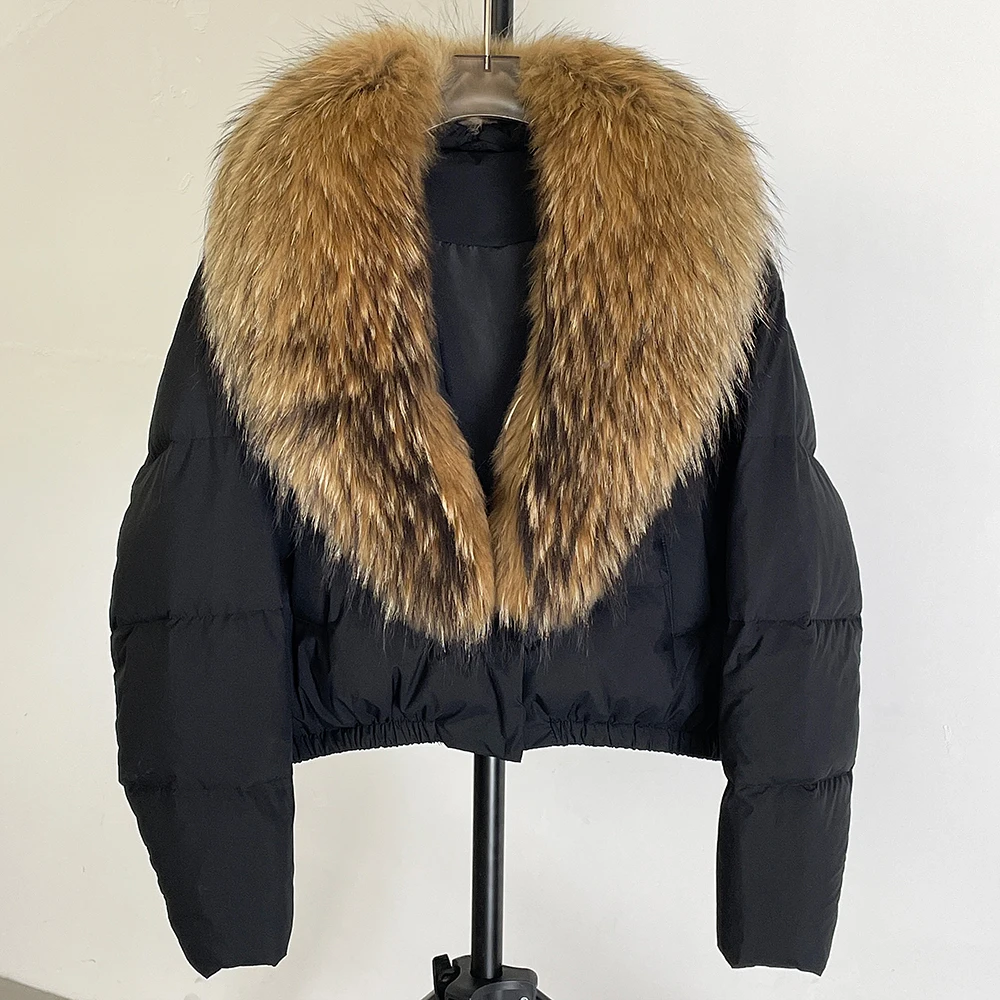 A winter-ready puffer jacket designed for serious warmth with a polished, elevated look. Filled with high down content for lightweight insulation, it features a detachable fur collar so you can switch between a statement finish and a cleaner silhouette. A short length and thick construction make it ideal for daily wear while staying comfortable and protective in cold weather.